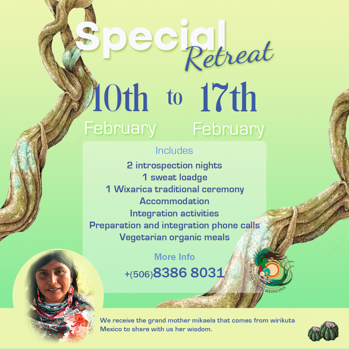 2 introspection nights 1 sweat loadge 1 Wixarica traditional ceremony Accommodation Integration activities Preparation and integration phone calls Vegetarian organic meals